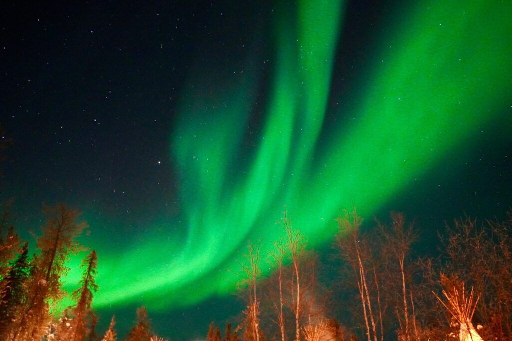 イエローナイフはオーロラ帯のほぼ真下に位置しており、一年を通してオーロラが見やすい場所として知られています。