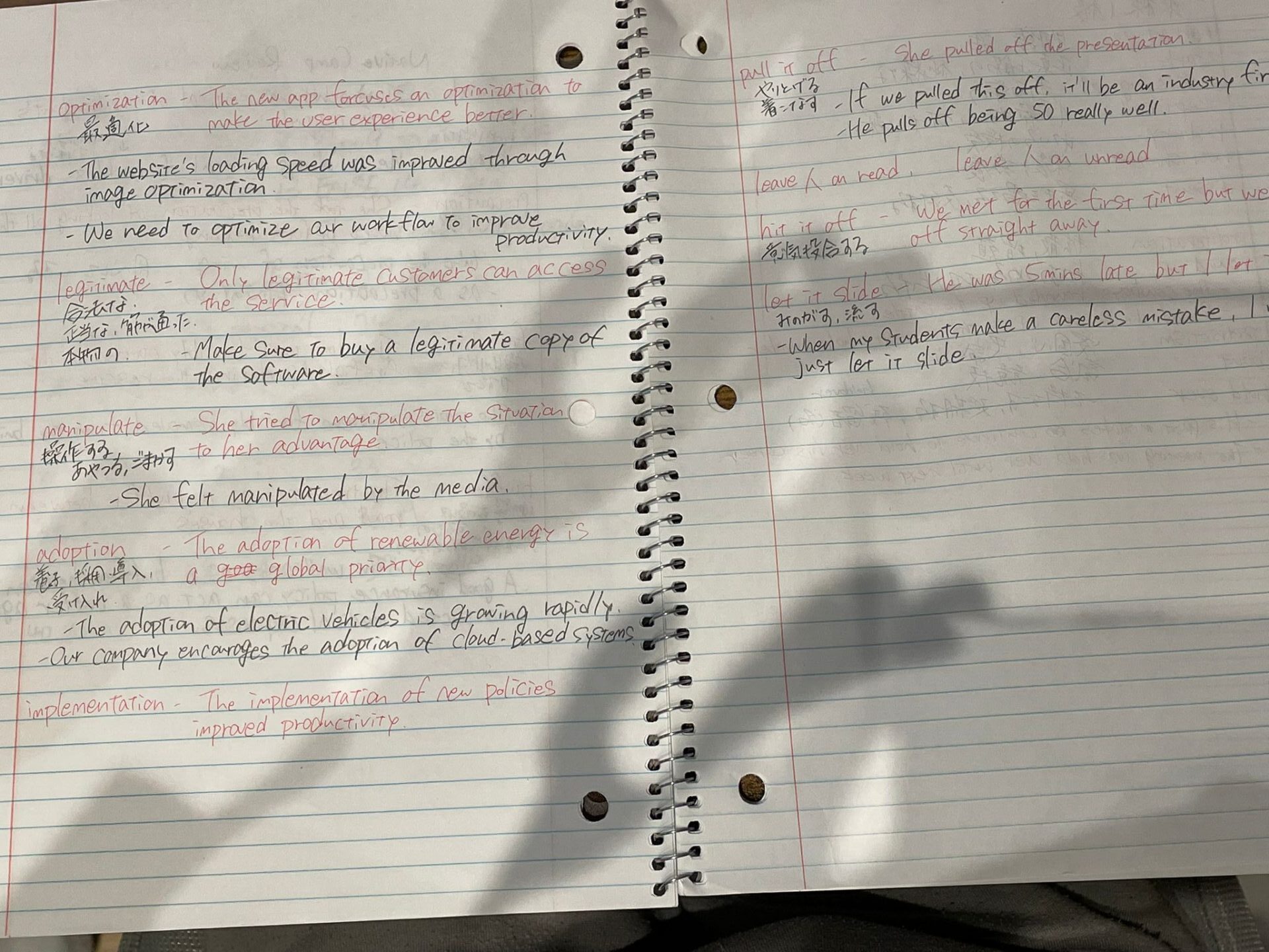 知らなかった単語や表現とその意味をノートにメモしておきます。これをあとから覚えるまで何度も見返して、単語を頭に入れていました。